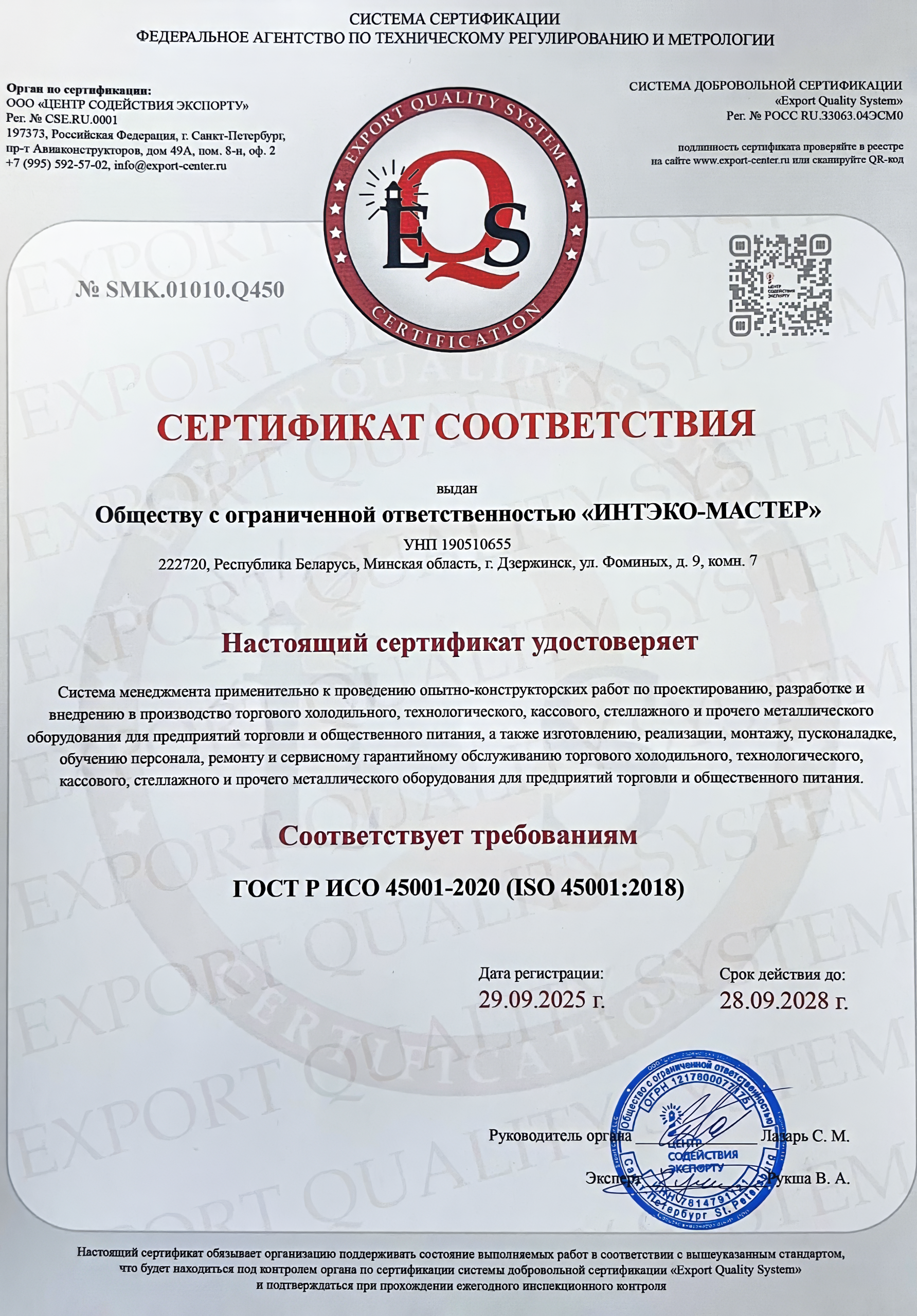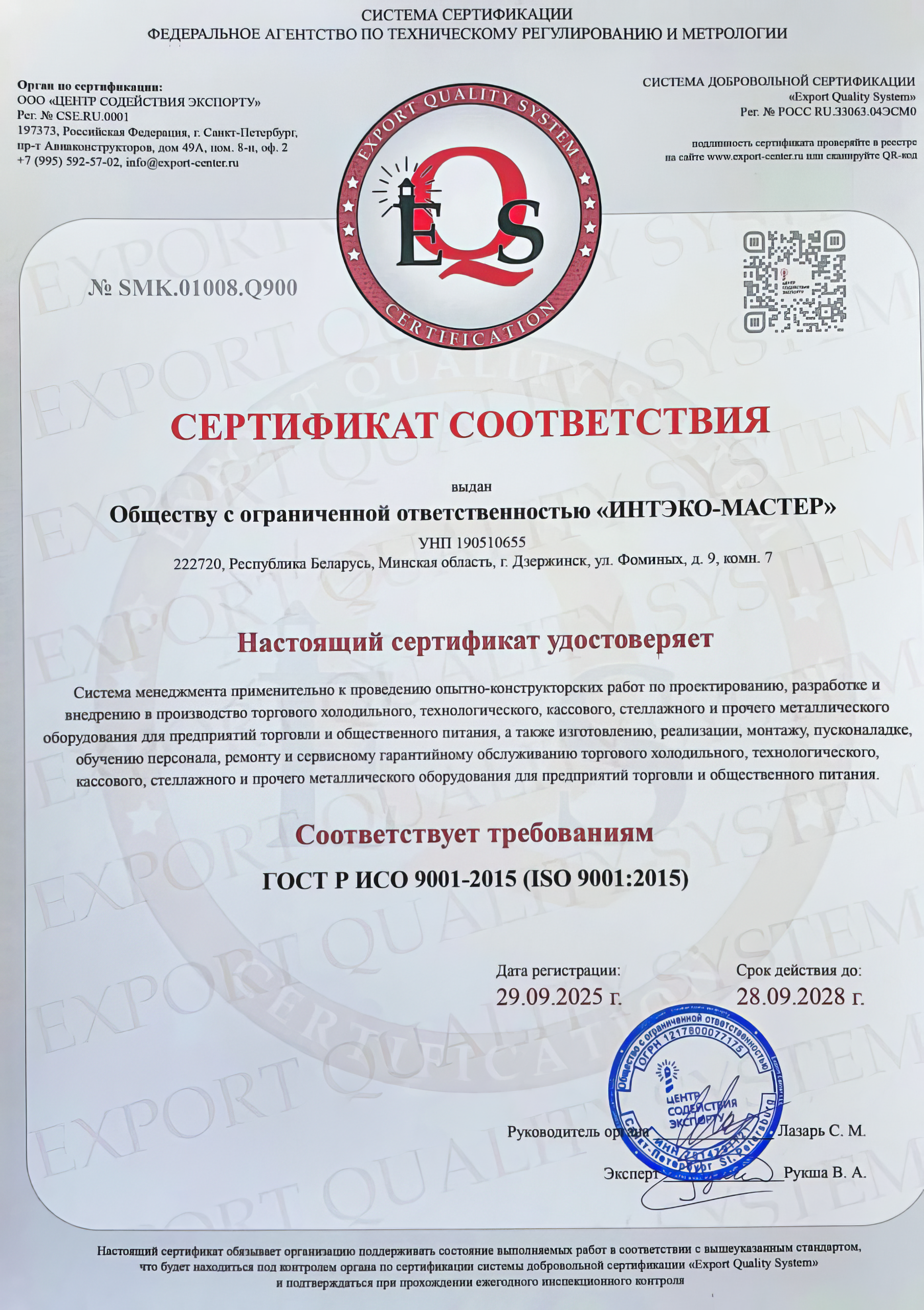 С 2004 года «ИНТЭКО-МАСТЕР» изготавливает торговое холодильное и технологическое оборудование, подтверждая компетентность и профессионализм сотрудников компании.